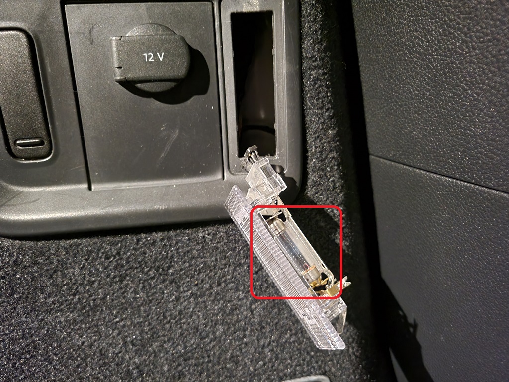 この車両は7人乗り+スライドドアの為に小型車のタンクよりもランプがかなり多いですが、今回はマップランプと2列目及び3列目のルームランプ、ラゲッジランプの4か所を交換します。